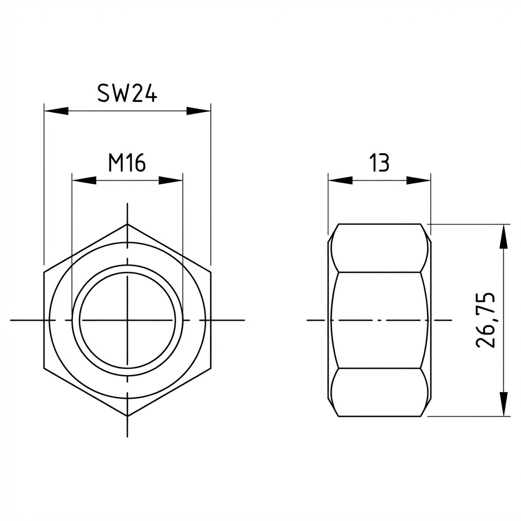Zhoda s normou DIN 934 znamená štandardizovaný šesťhranný tvar, ktorý umožňuje jednoduché dotiahnutie pomocou štandardného kľúča. Matica je opakovane použiteľná a pasuje na všetky metrické skrutky M16 s pravotočivým závitom.