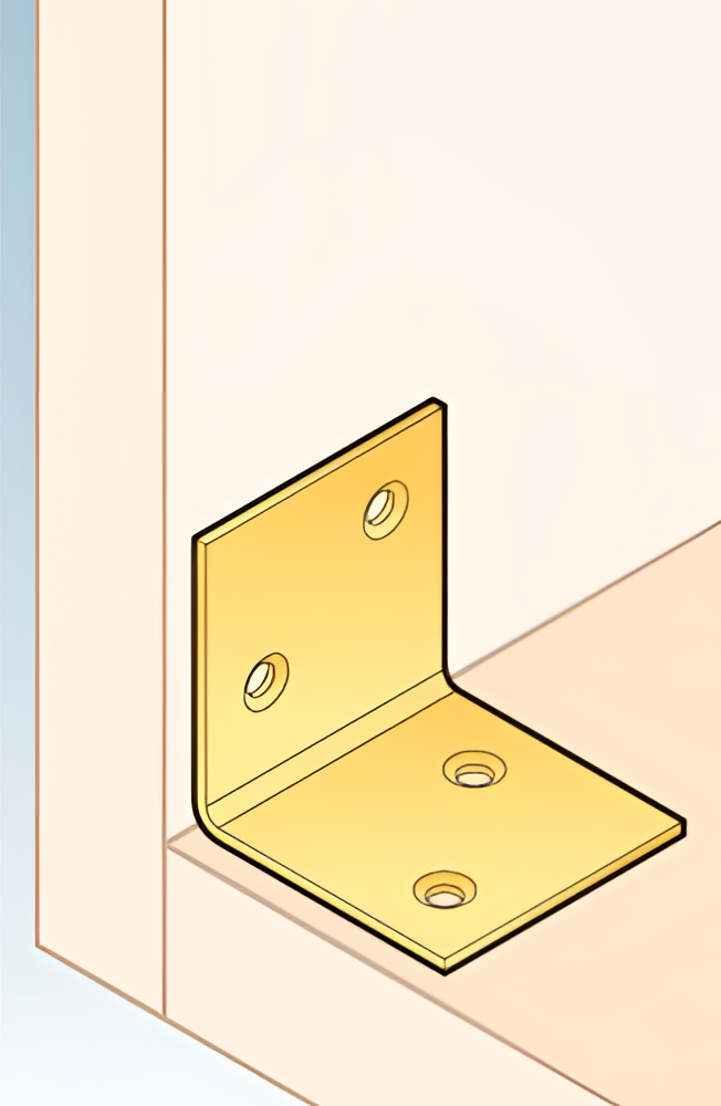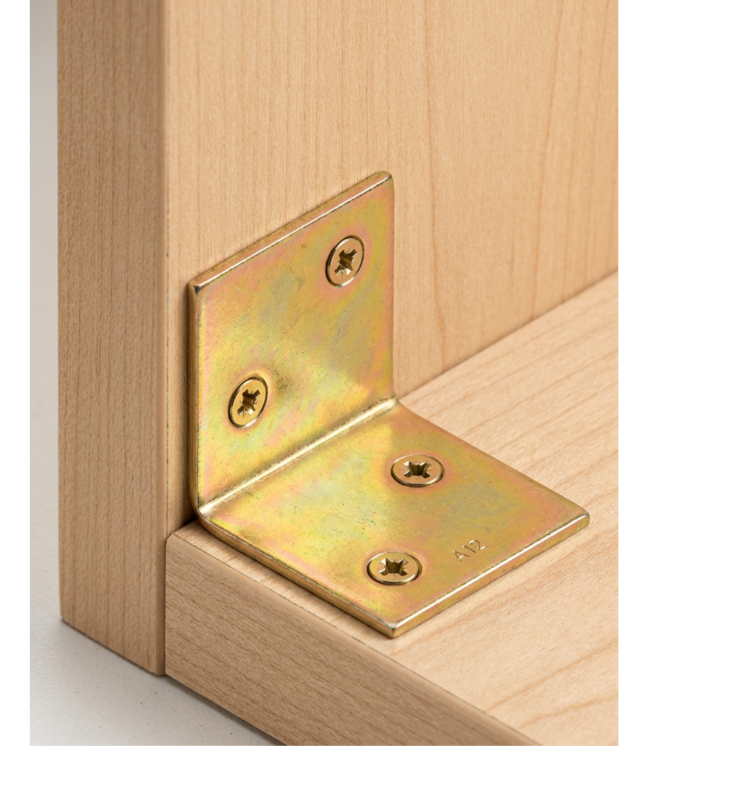 Široký montážny uholník KS1 je univerzálny rohový spájač určený na stolárske, nábytkárske a drobné drevené konštrukcie. Vyrobený z oceľového plechu DC01 hrúbky 1,5 mm s antikoróznou ochranou v podobe galvanického pozinkovania v zlatej farbe, zabezpečuje trvalé a estetické spojenie prvkov v pravom uhle.