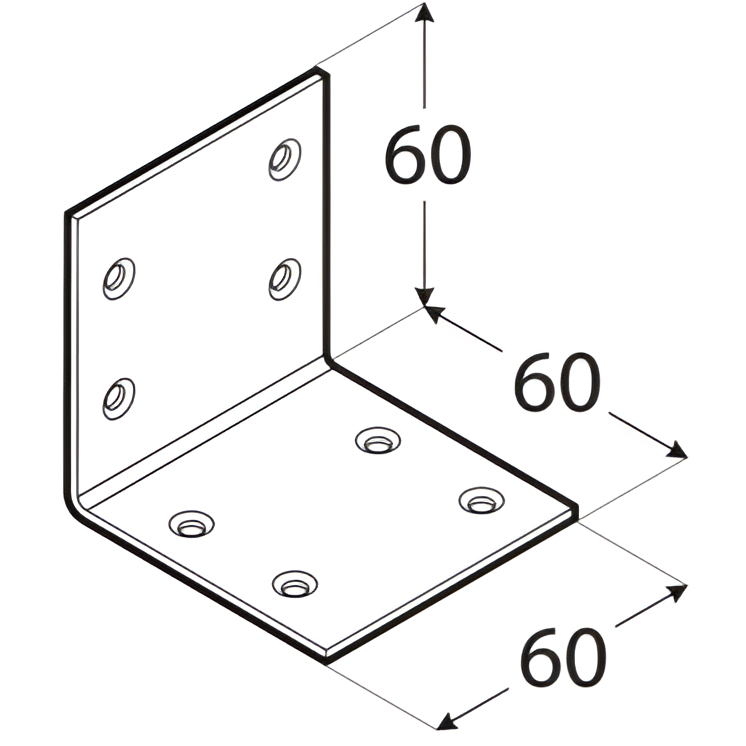 Široký uholník KS 3 je odolný uhlový spoj s rozmermi 60 × 60 × 60 mm, určený na pevné spájanie drevených prvkov v stolárskych, nábytkarských a stavebných konštrukciách. Vďaka symetrickému tvaru s dvoma širokými ramenami zabezpečuje rovnomerné rozloženie síl a vysokú stabilitu spoja — ideálny prvok pre montážnikov hľadajúcich spoľahlivé spojky v každodennej práci.
