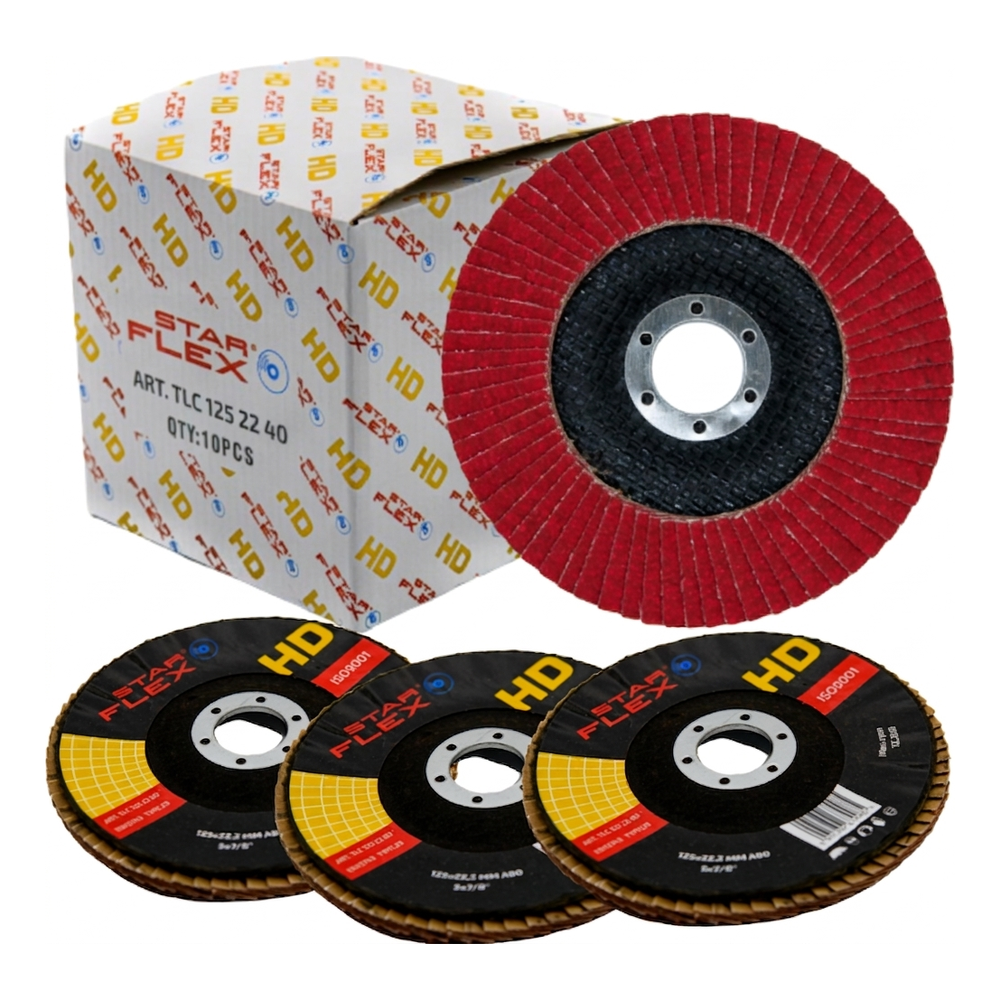 Starflex HD je inovatívny lamelový kotúč s keramickým zrnom, navrhnutý na intenzívnu hrubú obrábku a brúsenie ocele, nehrdzavejúcej ocele (INOX), chrómu, titánu a ďalších ťažko obrobiteľných kovov. Samoostrojacie keramické zrno, rovnomerne rozložené na lamelách, zabezpečuje maximálny úbytok materiálu v krátkom čase — ideálne riešenie pre montážne tímy, ktoré potrebujú spoľahlivý nástroj na každodennú prácu na stavbe a v dielni.