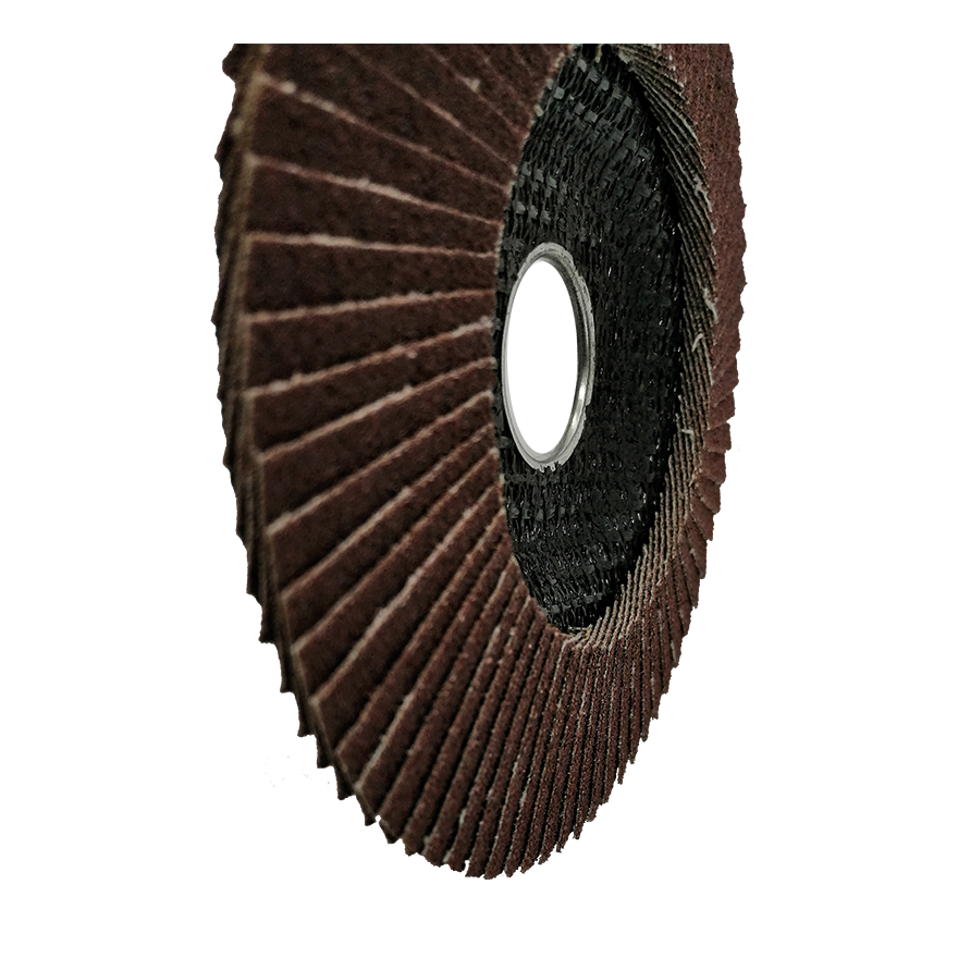 Kotúč v ohnutom vyhotovení (T29) má užšiu zónu kontaktu s obrábaným povrchom, čo umožňuje sústrediť tlak brúsenia a urýchliť odstraňovanie materiálu. Je to ideálne riešenie na prácu na hranách, rohoch a ťažko prístupných miestach. Optimálny uhol práce je 10°–25°. Ohnuté vyhotovenie sa líši od plochého (T27) tvarom kotúča – je mierne zakrivený, čo uľahčuje presné brúsenie pod uhlom.