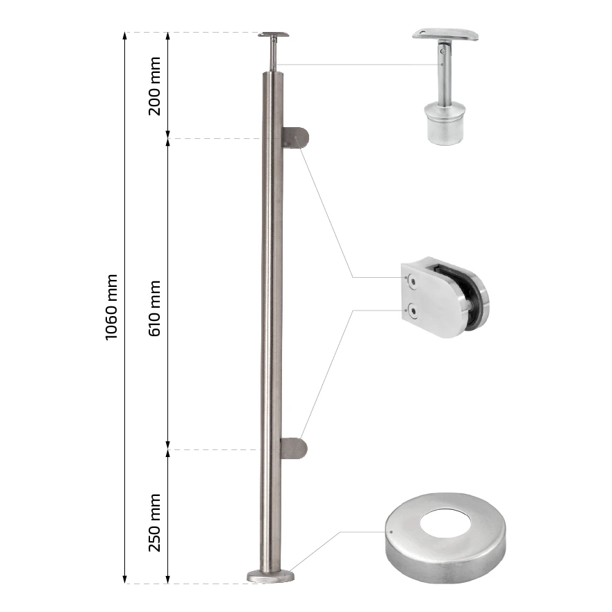 Stĺpik koncový pravý/ľavý fi 42,4x1060mm AISI304 2 držiaky na sklo podlahový