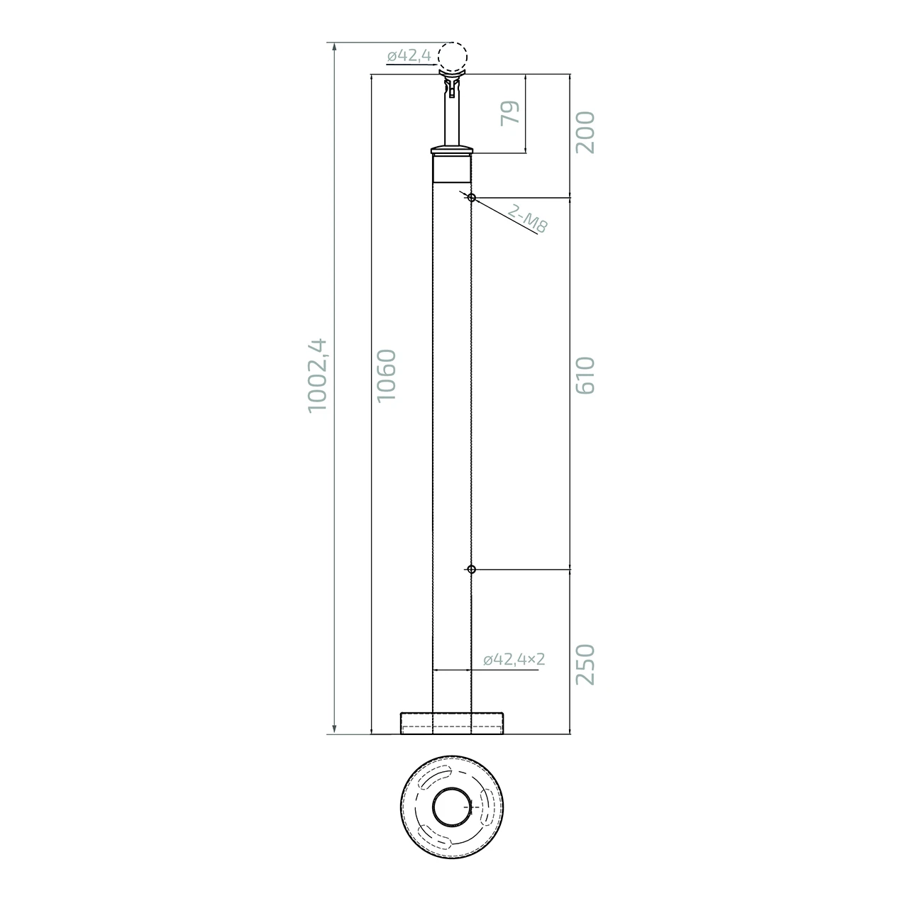 - Stĺpik fi 42,4 × 2 mm, výš. 1060 mm