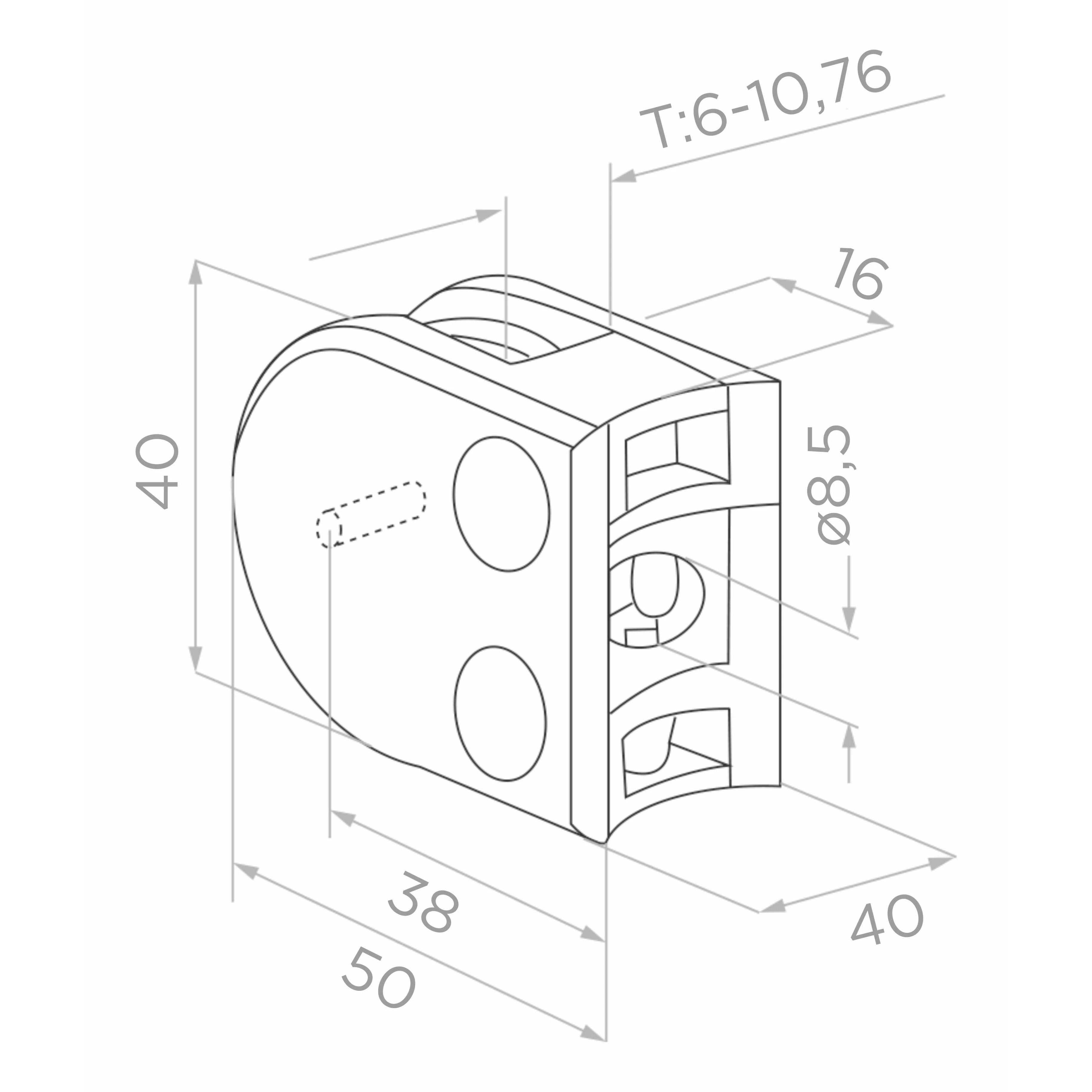- Držiaky na sklo — 2 ks, rozmery 50 × 40 × 40 mm, montážny otvor ø 8,5 mm