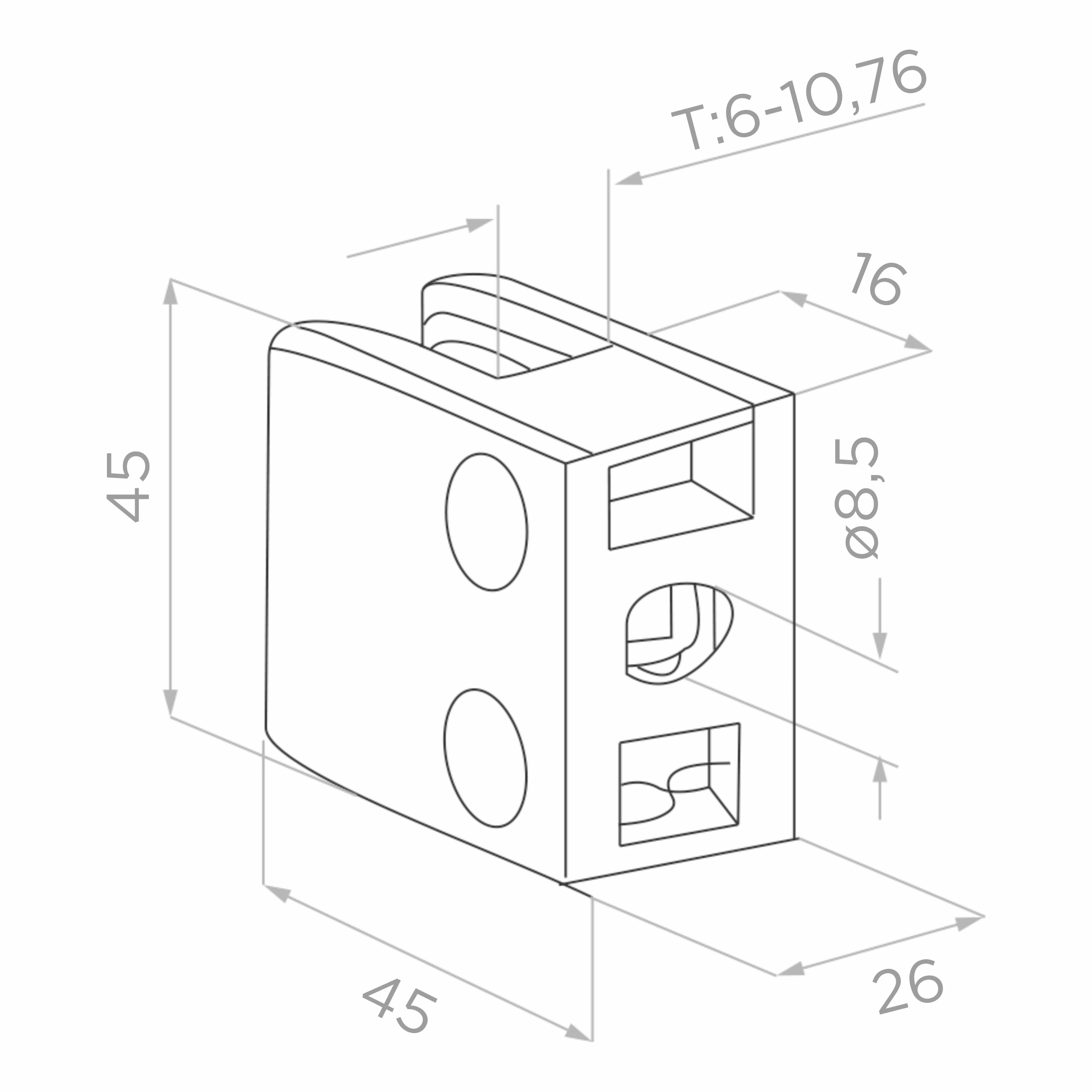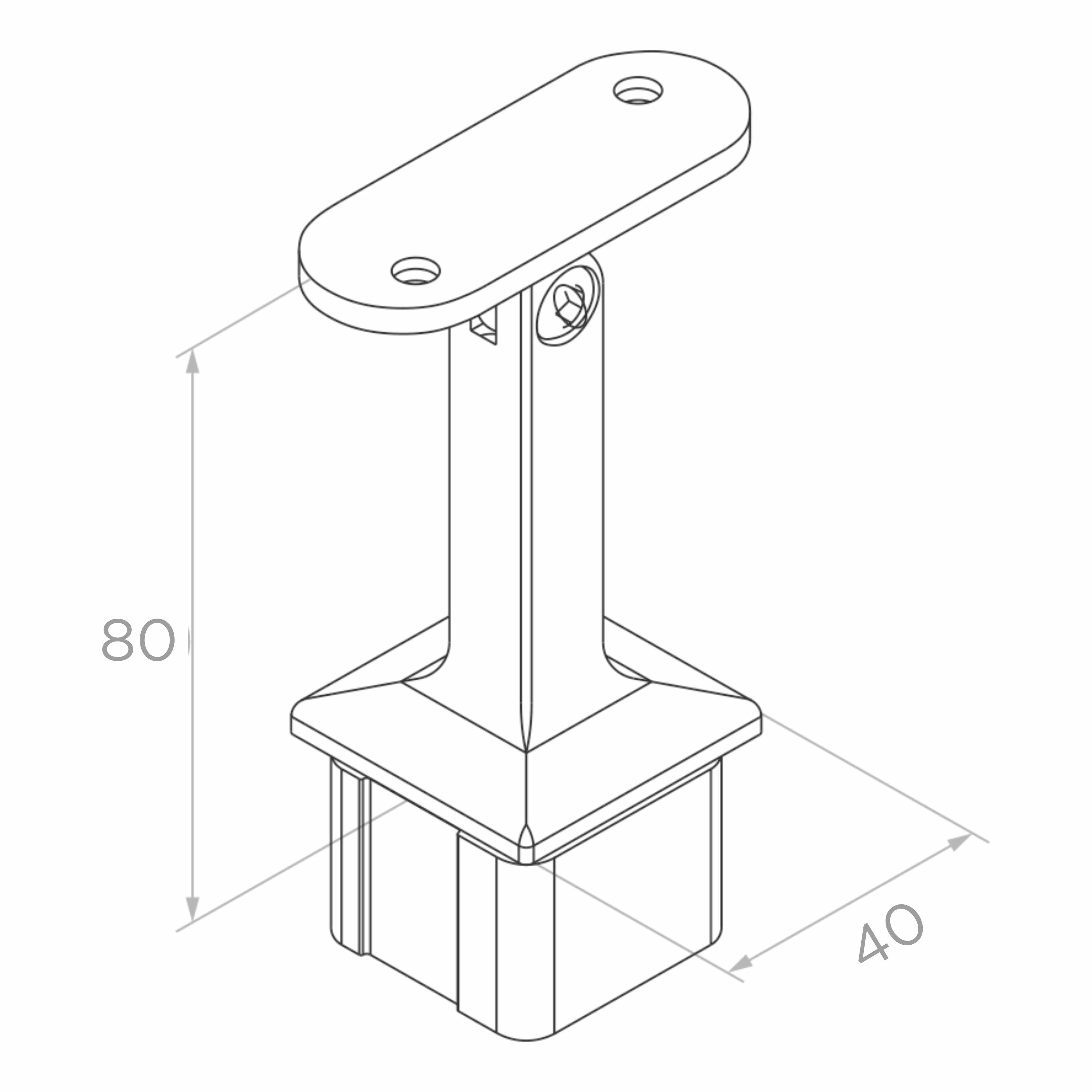 Konzola madla s výškou 80 mm so základňou prispôsobenou profilu 40×40 mm — montuje sa zhora stĺpika pomocou anaeróbneho lepidla. Nastaviteľná horná platňa umožňuje presné nastavenie uhla sklonu madla.