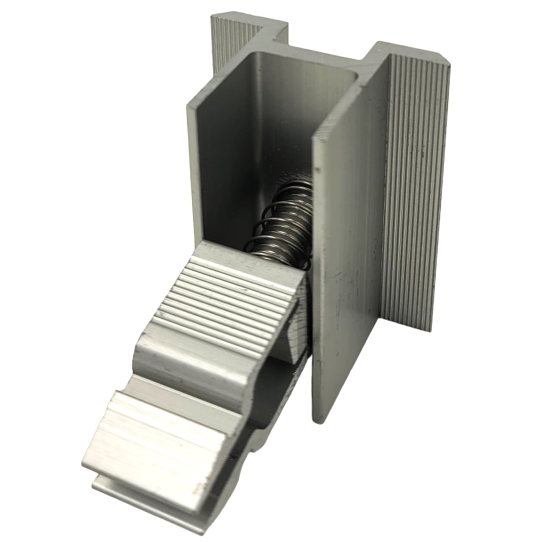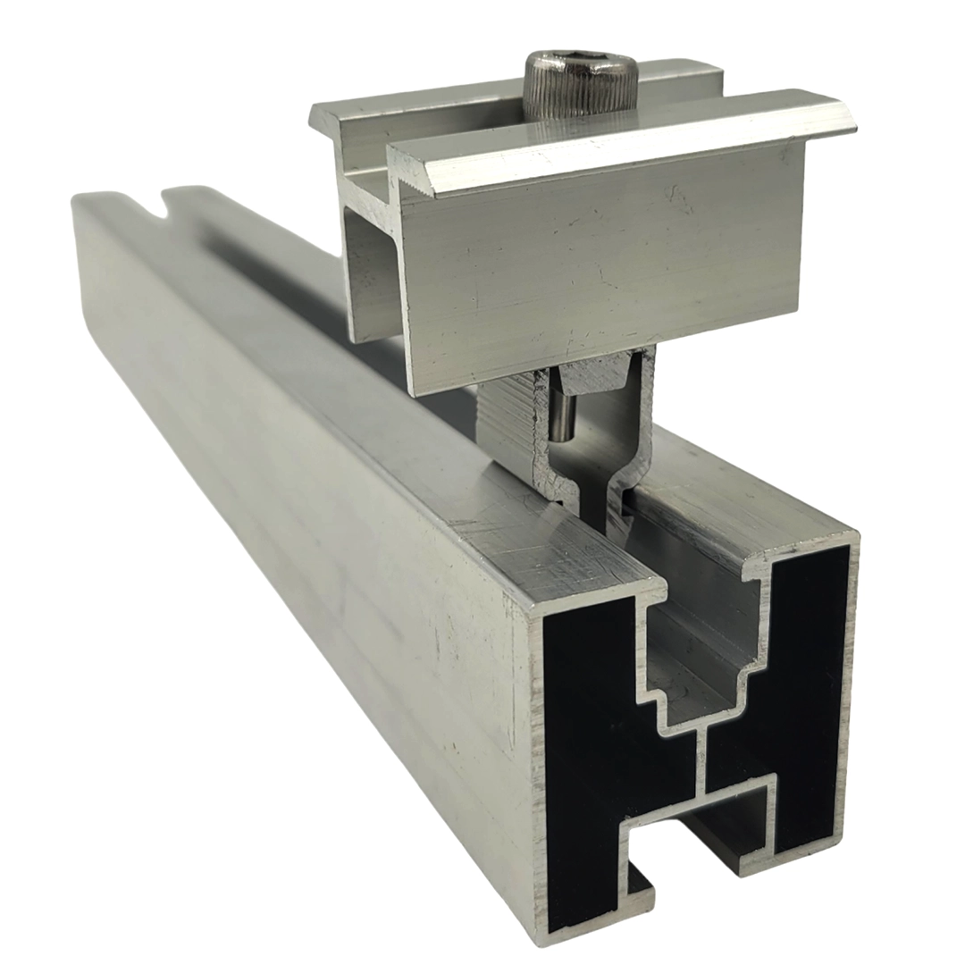 Stredová svorka s cvaknutím a skrutkou je neoddeliteľnou súčasťou inštalácie solárneho modulu. Stredová svorka je montážny prvok pre fotovoltaické inštalácie a slúži na upevnenie fotovoltaického panela na hliníkový konštrukčný profil. Používa sa na montáž fotovoltaických panelov na plochých aj šikmých strechách.