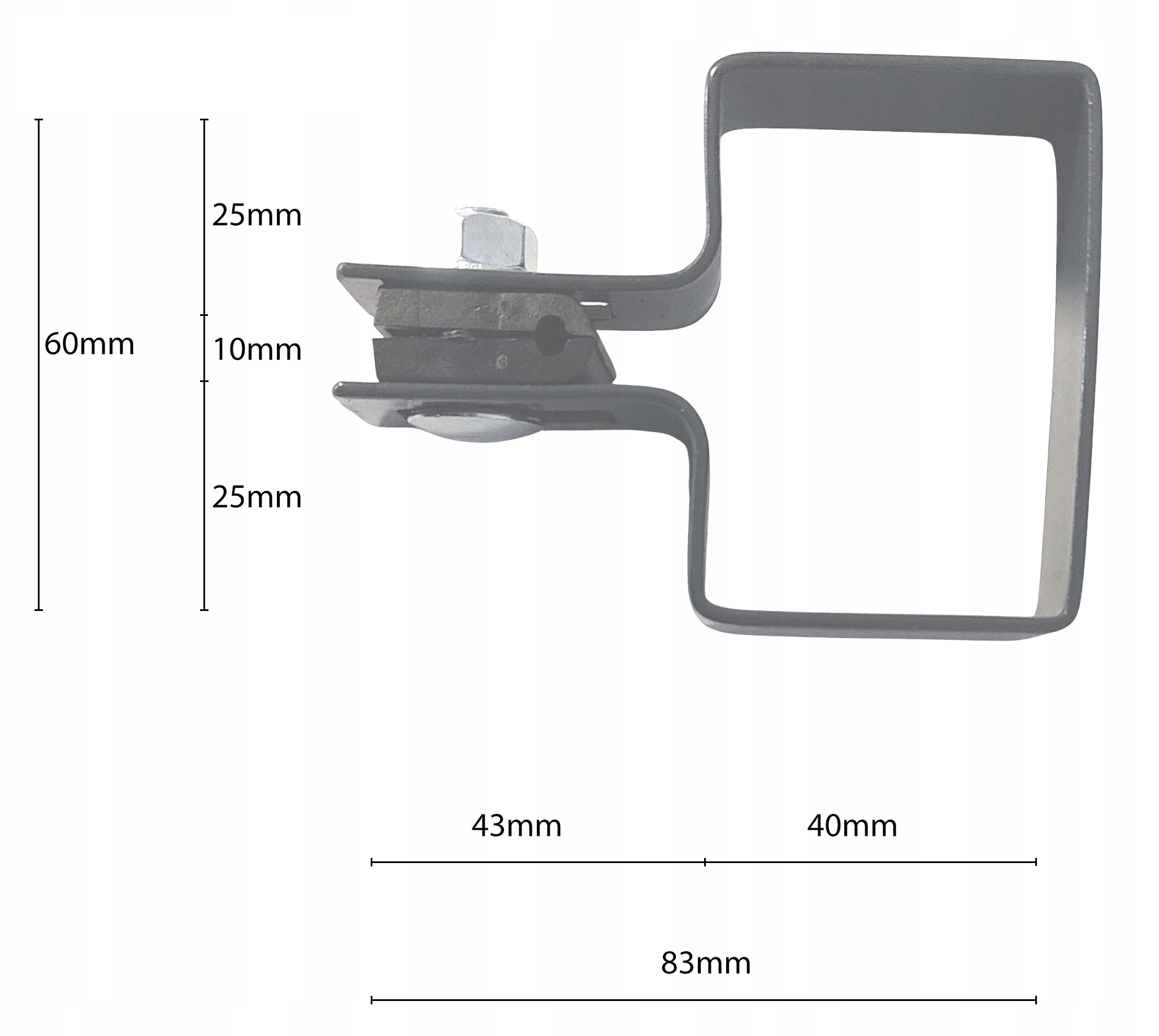 Koncová objímka na plotové panely 40x60 je pevný konštrukčný prvok slúžiaci na montáž plotových panelov na stĺpiky s prierezom 40x60 mm.