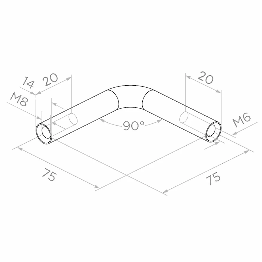 Tyč podpory madla je určená pre profesionálne konštrukcie zábradlí z nehrdzavejúcej ocele. Vďaka symetrickým ramenám 75 × 75 mm a pravému uhlu sa ideálne hodí pre štandardné rohové spojenia. Kombinácia vonkajšieho závitu M8 a vnútorného M6 umožňuje priame zaskrutkovanie do úchytov madiel a spojníkov, čo výrazne urýchľuje montáž a eliminuje potrebu zvárania.