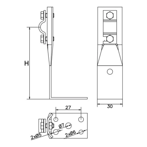 Uholníkový držiak s plechom H80 je pevný prvok bleskozvodu určený na vedenie hromozvodu na strechách a stenách. Osvedčuje sa na murovaných, drevených podkladoch aj na podkladoch krytých plechom, šindľom či lepenkou.