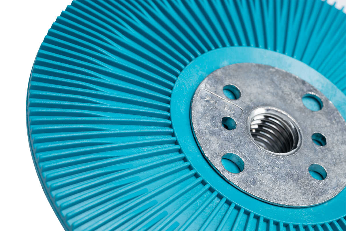 Pri intenzívnom brúsení fibrovými kotúčmi je kľúčovým problémom nadmerné prehrievanie materiálu a podložky. Tradičné, ploché podložky zadržiavajú teplo, čo vedie k rýchlejšiemu opotrebovaniu kotúča a zhoršeniu kvality obrábania. Turbo Pad 3 eliminuje tento problém vďaka rebrovanému povrchu, ktorý vytvára ventilačné kanály medzi kotúčom a podložkou. Vzduch voľne prúdi pod fibrovým kotúčom, účinne odvádzajúc teplo zo zóny brúsenia. Výsledok? Dlhšia životnosť brúsnych materiálov a pohodlná práca aj pri dlhých brúsiacich seknciách.