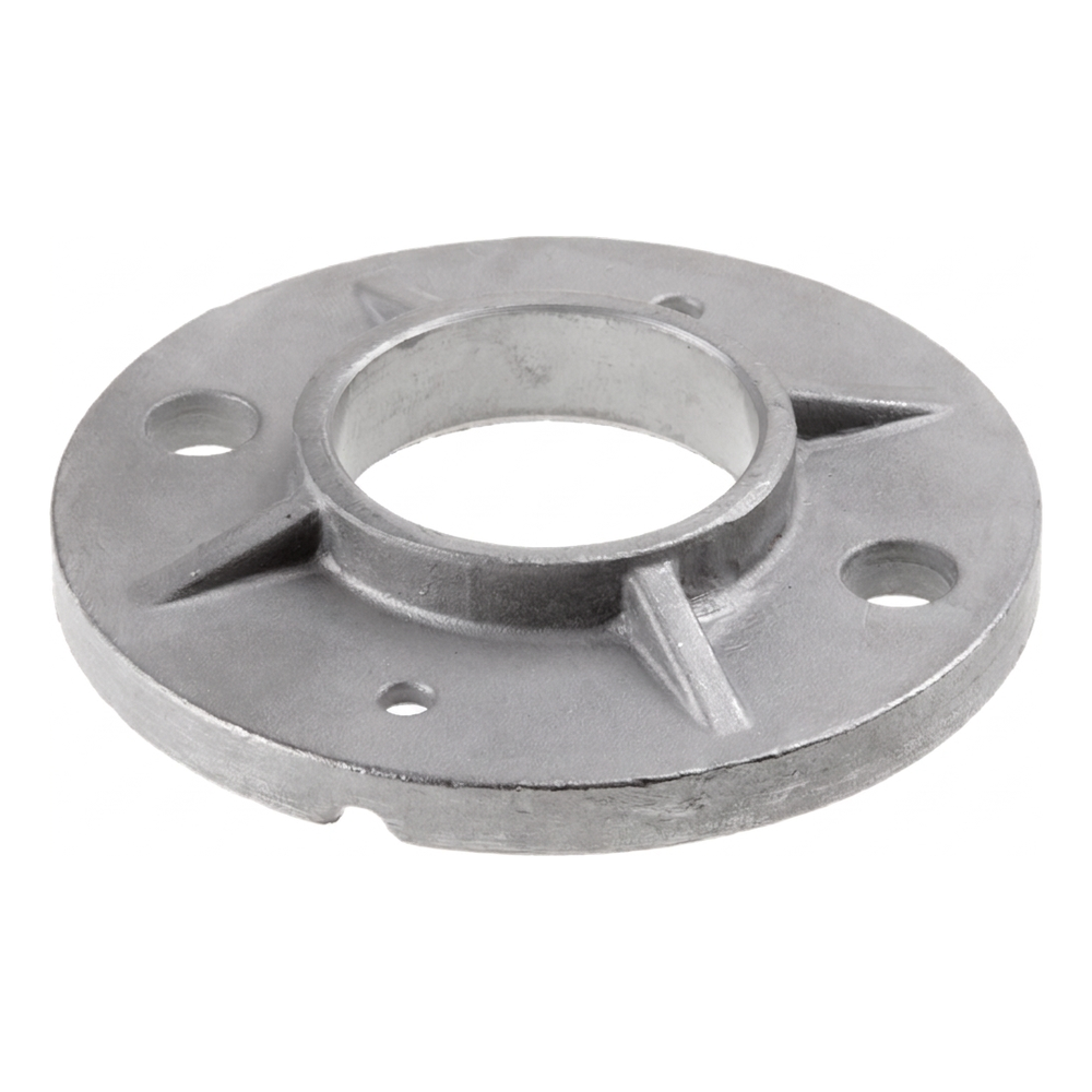 Zosilnená základňa zábradlového stĺpa na zváravanie určená na trvalý montáž okrúhlych stĺpov s priemerom 48,3 mm. Vďaka štyrom zosilňovacím rebrám zabezpečuje vysokú stabilitu a pevnosť celej zábradlovej konštrukcie, eliminuje riziko vôle alebo deformácií v mieste spojenia stĺpa s podkladom.