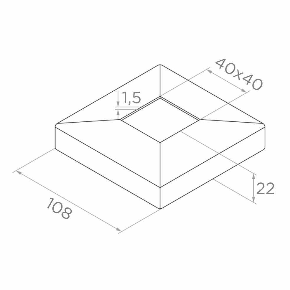Štvorhranná zakrývacia rozeta 108×108 mm určená na profily zábradlia s prierezom 40×40 mm. Elegantne zakrýva montážne otvory v konštrukciách nerezových zábradlí a zabezpečuje estetické dokončenie každej realizácie. Vyrobená z nerezovej ocele AISI 304 v povrchovej úprave leštený (lesk) — garantuje trvanlivosť, odolnosť proti korózii a súdržný, moderný vzhľad celého zábradlia.