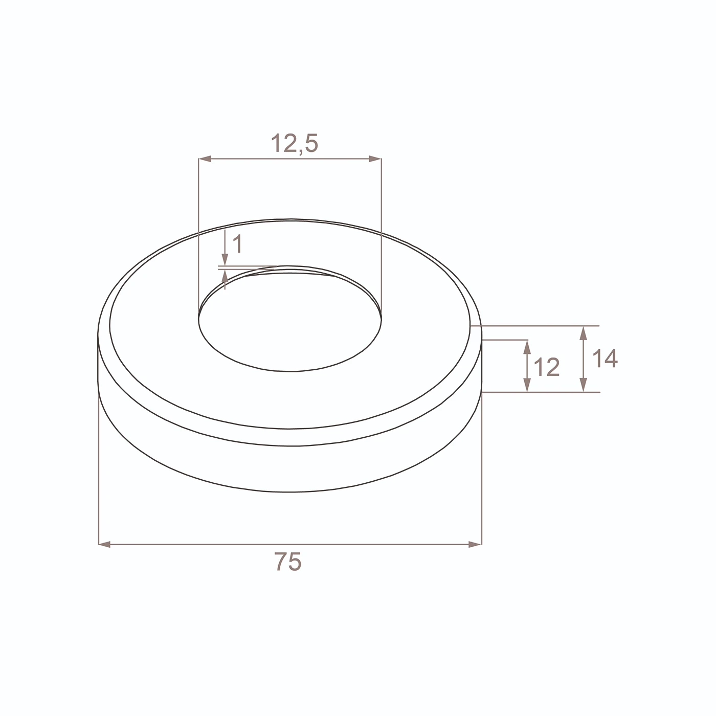 Zakrývacia rozeta okrúhla pre rúru fi 12 mm – nerezová oceľ AISI 304, satén, Ø75 mm