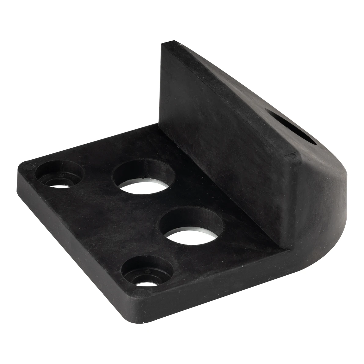 Zarážka je určená pre krídlové brány — montuje sa na rovný povrch pomocou troch skrutiek a účinne blokuje pohyb krídla na určenom mieste. Gumová vrstva minimalizuje vibrácie a zvuky pri kontakte s bránou a zároveň tvorí mäkkú ochrannú bariéru v prípade nájazdu kolesa vozidla.