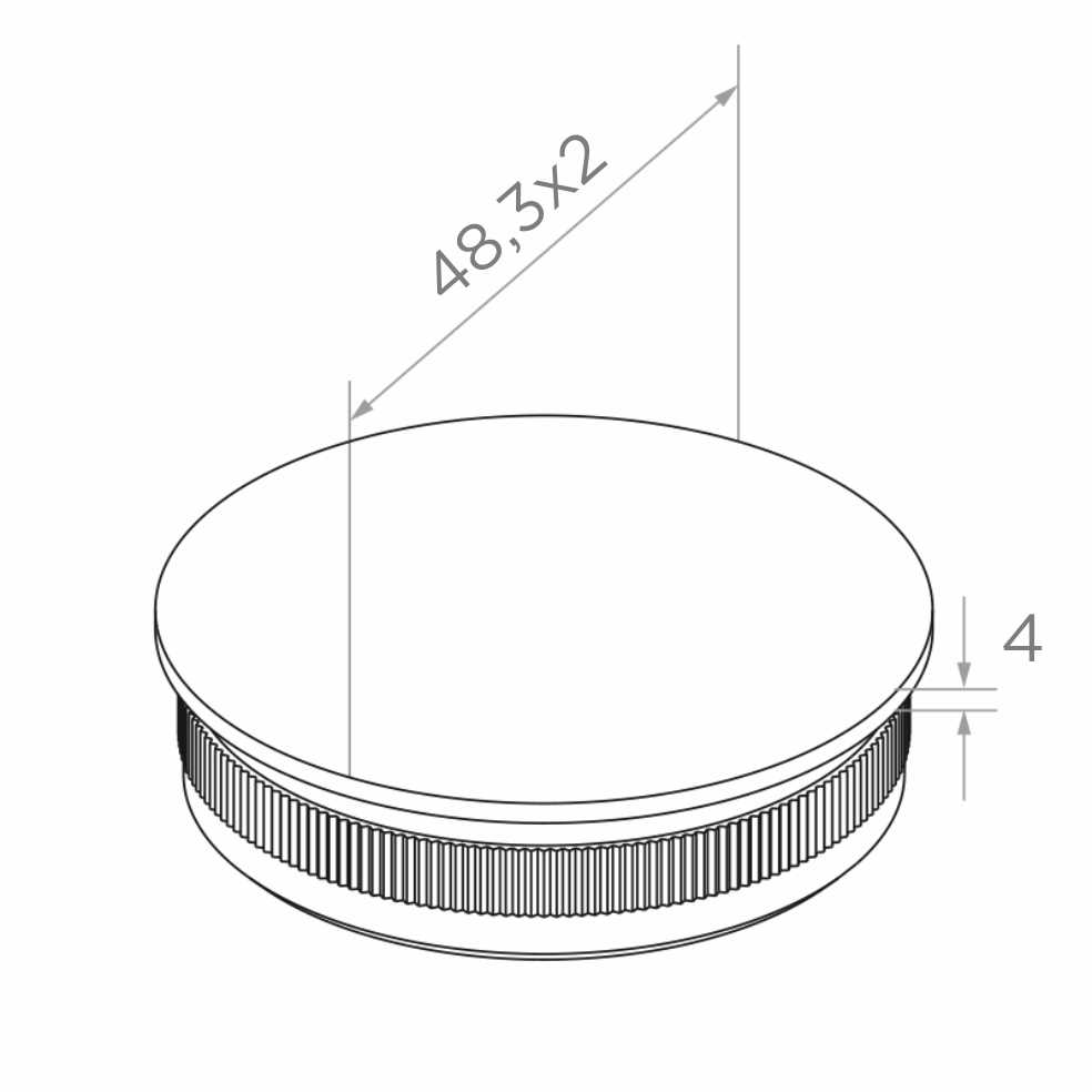 Zátka vypuklá zatlačovacia pre okrúhle rúry s priemerom 48,3 × 2 mm — estetický dokončovací prvok určený na uzatváranie koncov madiel a stĺpikov zábradlí. Vďaka ryhovanej osadzovacej časti sa montáž vykonáva metódou zatlačenia — bez dodatočných nástrojov, lepidiel alebo zvárania. Zátka zabezpečuje upravené, bezpečné uzavretie profilu, eliminuje ostré hrany a chráni vnútro rúry pred znečisteniami a vlhkosťou.