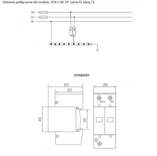 Vybavený indikátorom prevádzkového stavu, ktorý zelenou farbou signalizuje aktívnu ochranu a červenou – jej absenciu. Vďaka vstavanej tepelnej poistke nevyžaduje dodatočné prostriedky tepelnej ochrany, hoci ich používanie je odporúčané. Zvodič prepätia typu VCX DC C 3P 1000 V je vhodný na použitie v PV systémoch.