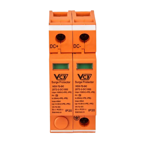 Zvodič prepätia PV DC Typ 2 (C) 1000V 2P 20kA 4,0kV DC C2P 1000 VCX, určený pre fotovoltaiku (PV), je zariadenie zabezpečujúce ochranu proti prepätiu pre fotovoltaické systémy pred atmosférickými výbojmi.